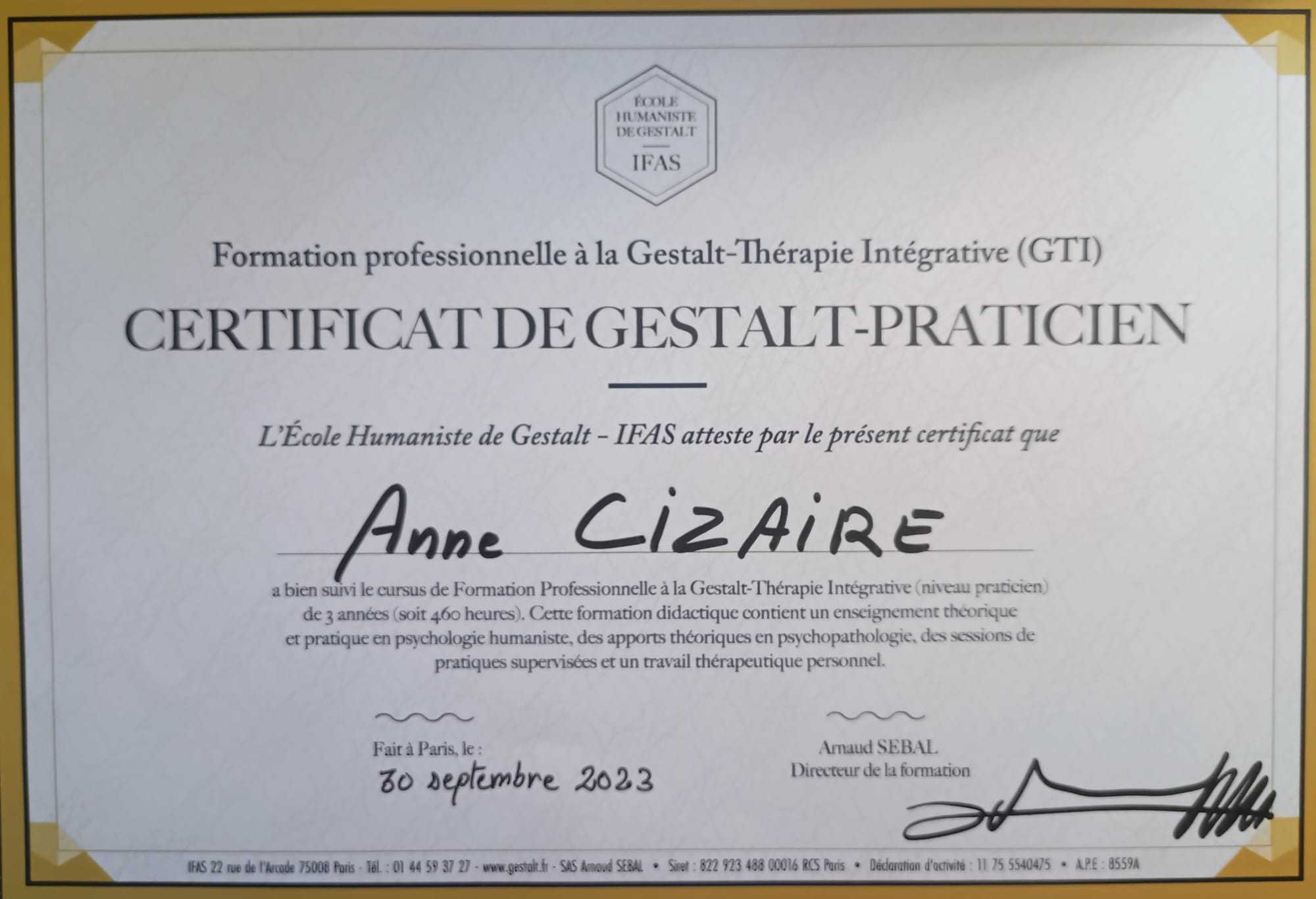 Je m’inscris dans le cadre du code de déontologie de l’Ecole Humaniste de Gestalt, qui implique tout au long de ma pratique :