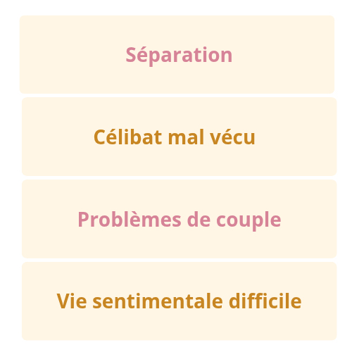 Le célibat fait partie intégrante de la sphère amoureuse. Il peut être vécu comme une période pleinement désirée ou un vide douloureux. Le célibat soulève la question de la solitude et de comment on la vit. Période de vie difficile à vivre après une séparation, célibat au long cours, crainte de se séparer par peur du célibat, cocon qui vous éloigne du désir de nouvelle relation amoureuse, dans tous les cas la thérapie vous permet de transformer votre rapport à la solitude en une ressource personnelle clé vers une vie plus pleine, plus sereine et plus en mouvement et de soigner les blessures encore actives liées à vos ruptures.